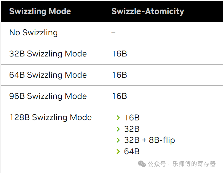 TMA支持以下几种Swizzling Mode,简单来说就是不同的交错方法5