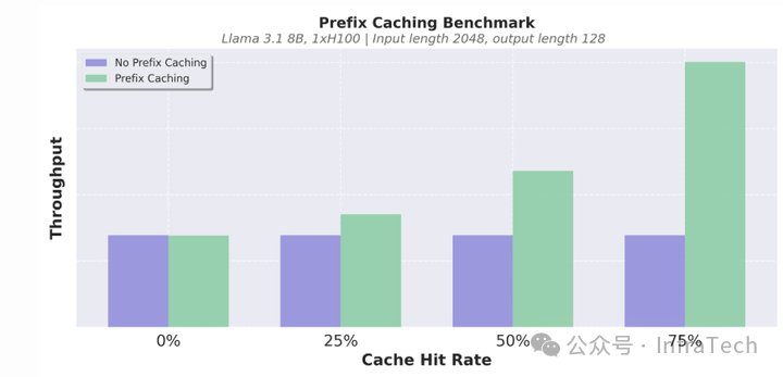 结合kv管理机制和部分优化(降低python对象创建开销)在prefix caching特性上面V1性能优化较大,这里给出社区的一个测试结果: