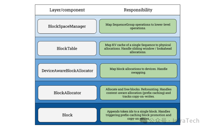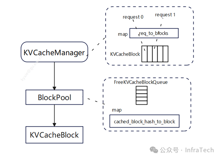 kv cache的管理模块主要是完成内存分配/使用/释放(原理参看PagedAttention),该模块需要给sequence的计算提供足够的存储空间,并且负责跟踪KV cache的状态,模块由scheduler调用。